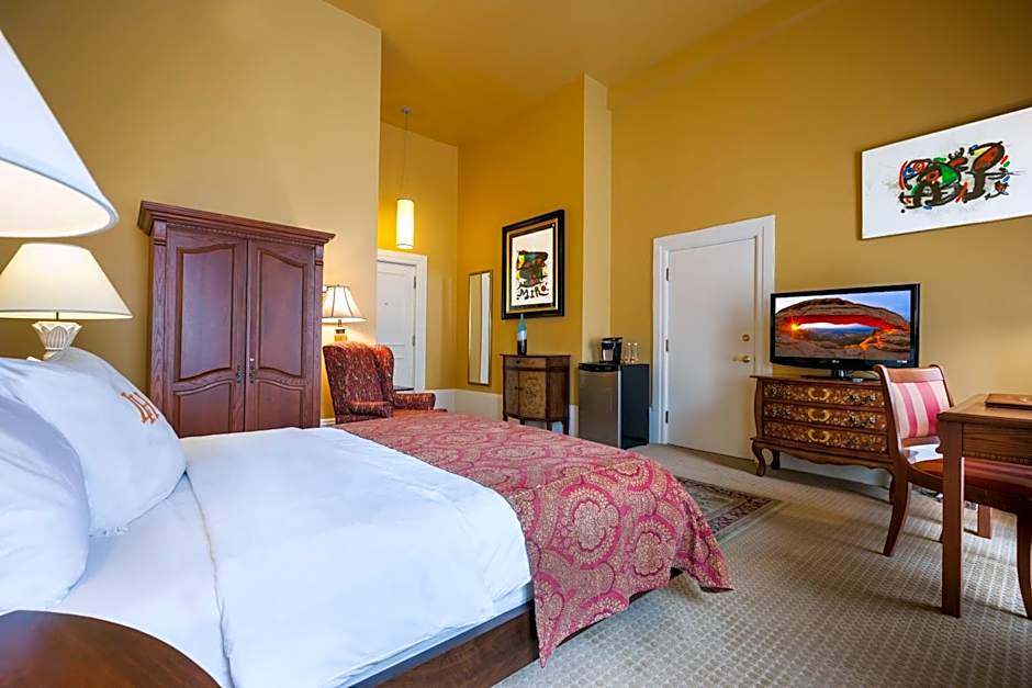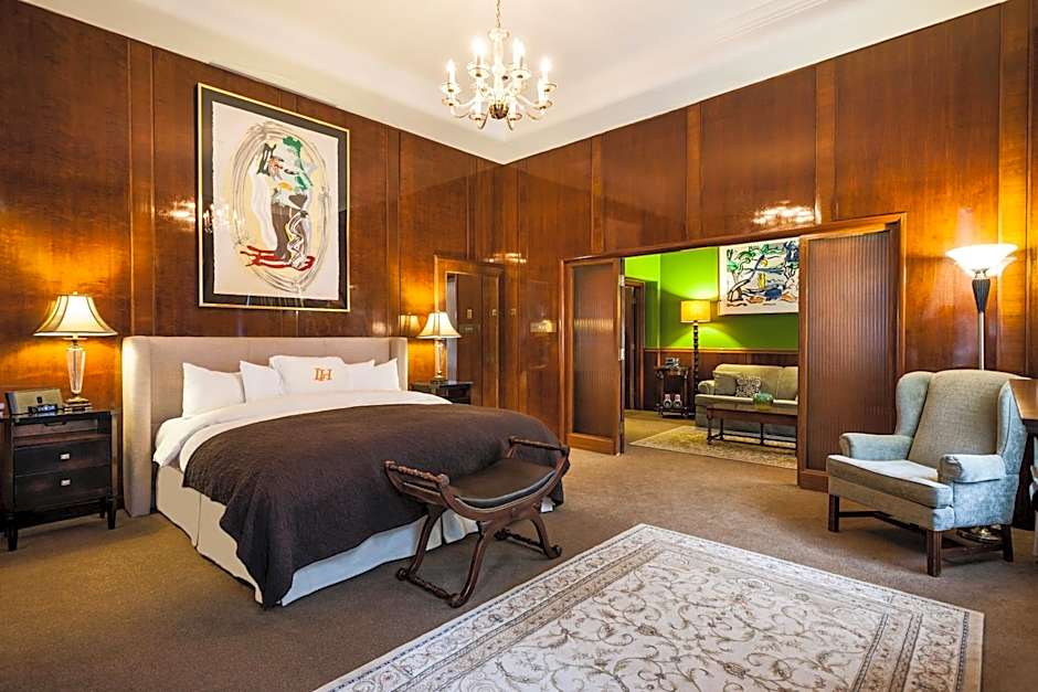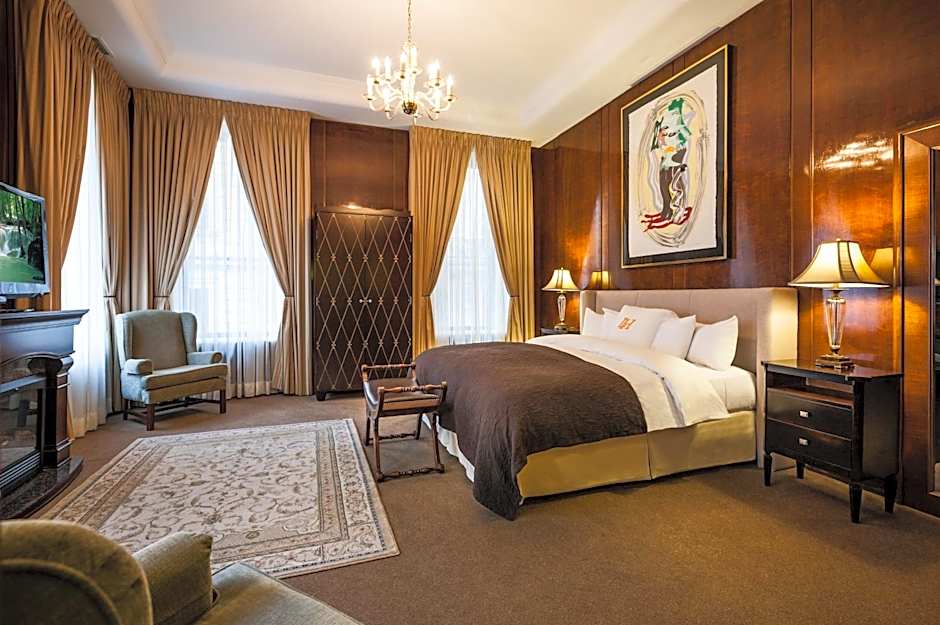 This suite offers a king bedroom and separate living room with a sofa bed. The suite provides electric fireplace, two reading chairs, refrigerator, TV with cable channels, stereo system with CD player, iPod player, electronic safety box, Nespresso coffee machine, bathroom with separate tub/shower, hair dryer, bathrobes and upscale bathroom amenities.
